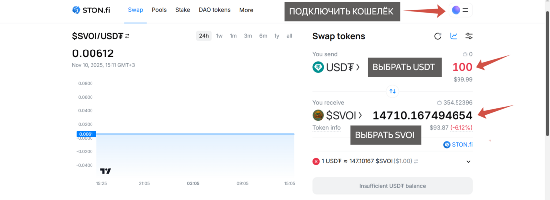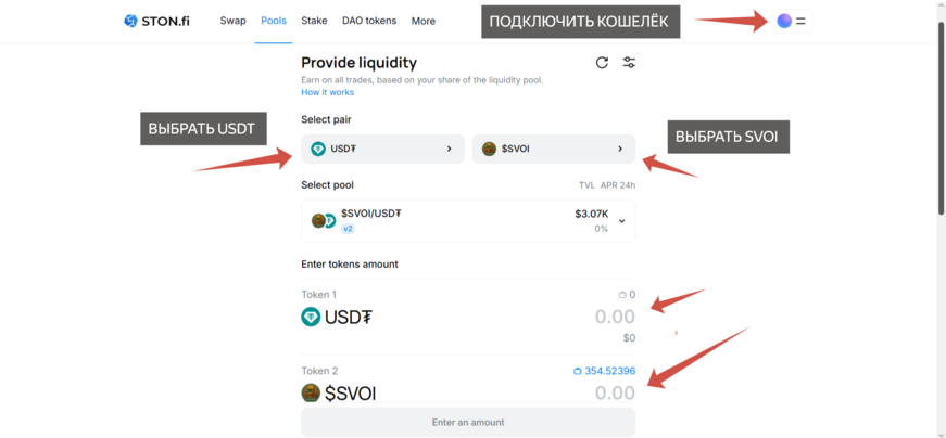 4. Внести свой паевой взнос (собственное участие) в размере не менее 35% в форме токенов LP (ликвидности обменной пары USDT/$SVOI) от общей суммы, требуемой на реализацию цели в Паевой фонд МПК.
