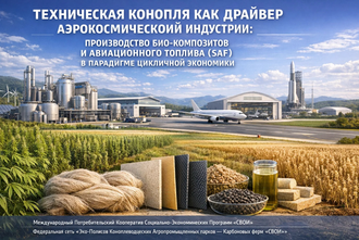 Авиастроение и космическая промышленность находятся на пороге глобальной трансформации, диктуемой необходимостью декарбонизации и поиска новых конструкционных материалов. Данная статья анализирует потенциал технической конопли (Cannabis sativa) как базового сырья для производства сверхлегких био-композитов и устойчивого авиационного топлива (SAF). На примере инновационного кластера Эко-Полис «СВОИ» рассматривается модель интеграции агротехнологий и Deep Tech производства, позволяющая создавать продукты с высокой добавочной стоимостью, обеспечивающие технологический суверенитет и экологическую нейтральность транспортных систем будущего.